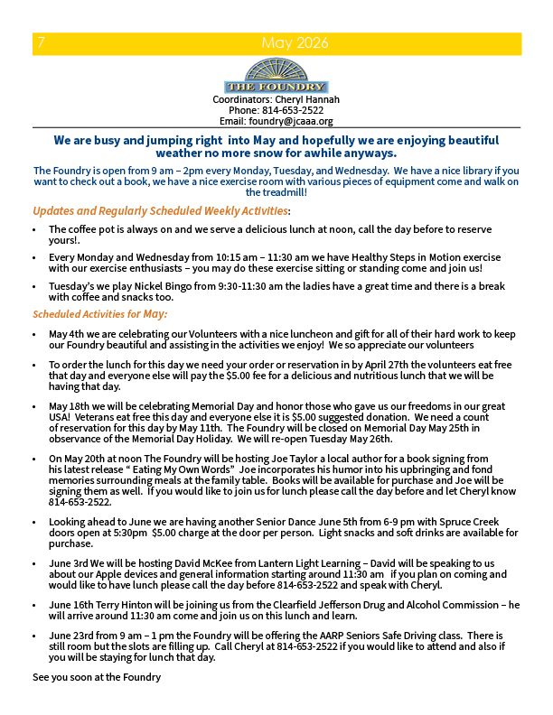 The Department of Agriculture will be sending us the Voucher the end of May.